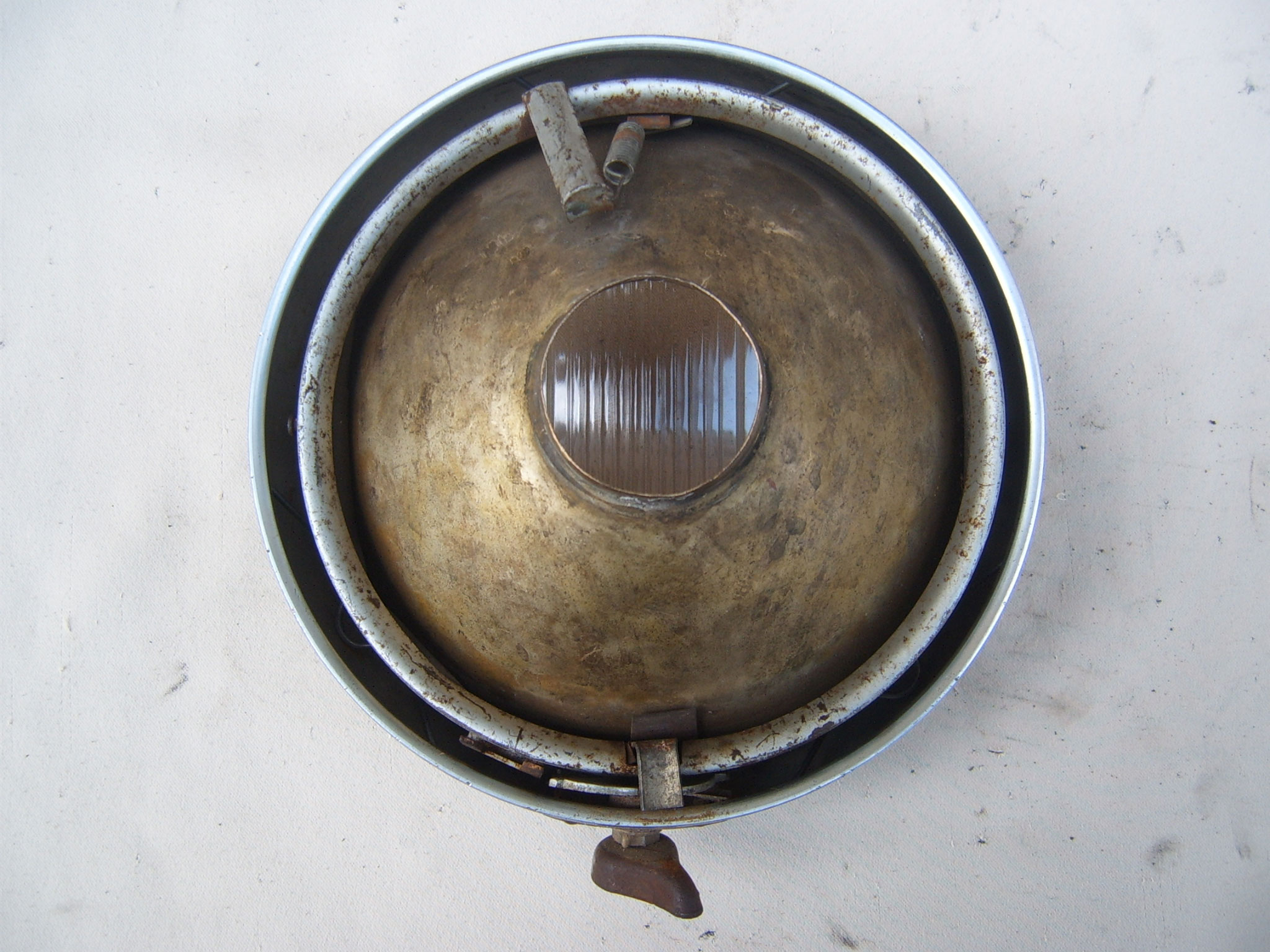Lampeneinsatz komplett MZ ES 175 250 alte FormLampeneinsatz (Scheinwerfereinsatz) komplett mit Reflektor, Reflektorring, Lampenring, Verstellhebel und Halteklammern, für die Motorräder MZ ES 175, MZ ES 175/1, MZ ES 250 und MZ ES 250/1 DDR-Originalersatzteil mit Lager- und Gebrauchsspuren, nur grob gereinigt, zur Aufarbeitung Reflektor mit Aufnahme für die Lampenfassung und den Reflektorring alte Form Lampeneinsatz MZ ES 175-250/0-1 Foto 1 Lampeneinsatz MZ ES 175-250/0-1 Foto 2 Lampeneinsatz MZ ES 175-250/0-1 Foto 3 149,90 €