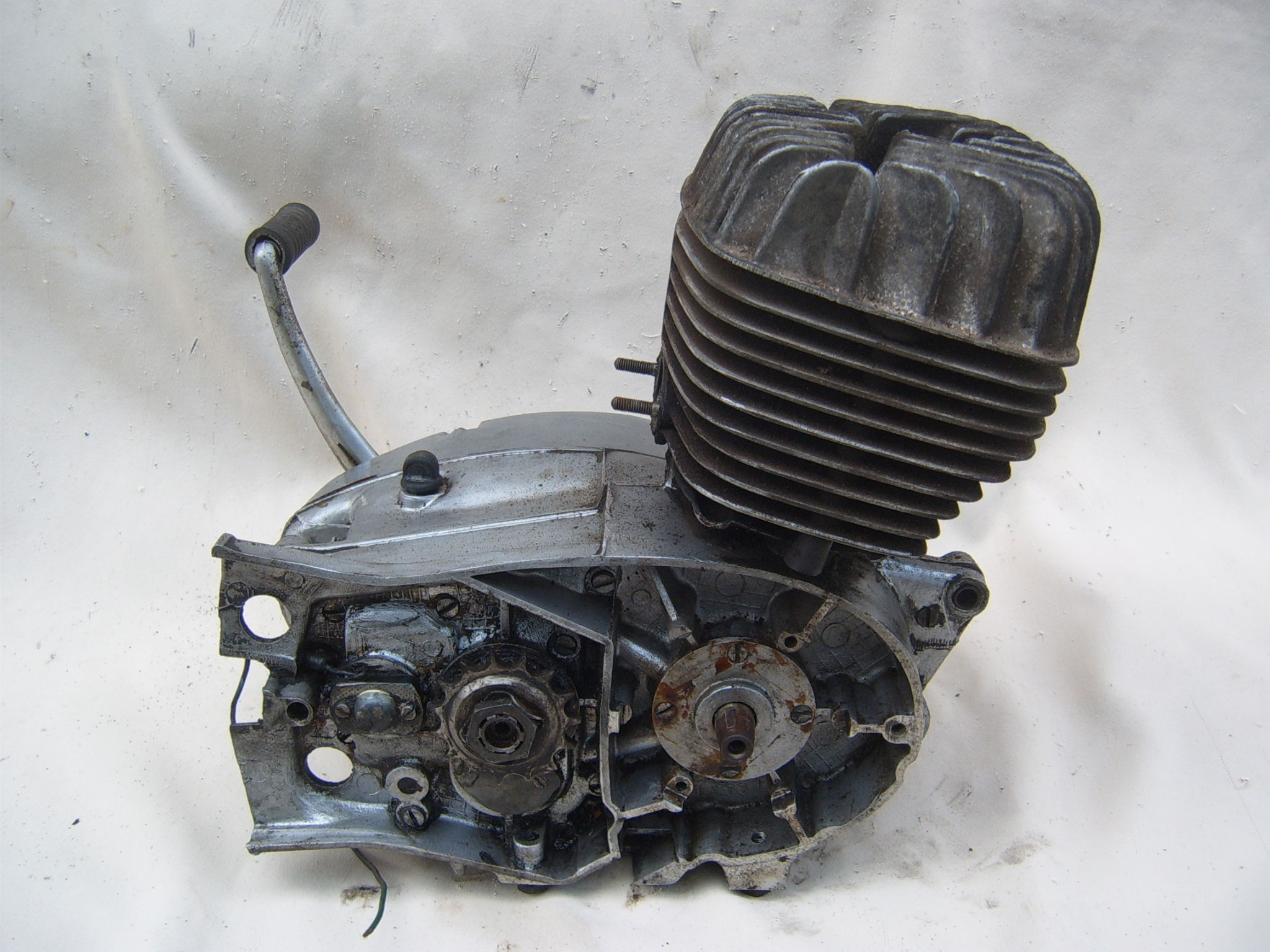 Motor MZ ES 150kompletter Motor MM 150/2 z.B. für MZ ES 150 und MZ ES 150/1 in unverbastelter Originalqualität, 100% DDR-Teile, aus altem Ersatzteilbestand Motor dreht mit guter Kompression, Getriebe schaltet in alle 4 Gänge, Kerzen- und Krümmergewinde in Ordnung, Motorgehäuse hinten an den 2 Aufnahmen zum Rahmen 28mm breit sehr gute Basis zur Regeneration oder als Reservemotor, könnte man wahrscheinlich auch so wie er ist einbauen, aber Wellendichtringe alt und laufleistungsentsprechender Verschleiß an den ersten Zähnen des Kickstartersegments nach den Köpfen der Schlitzschrauben, die die Gehäusemittelteile verbinden, ist der Motor ab Montage im MZ Werk oder einer MZ Werkstatt noch nie wieder geöffnet worden Verkauf bevorzugt an Selbstabholer; bei Versandwunsch bitte vorab per e-mail anfragen Auf Lager 299,90 €